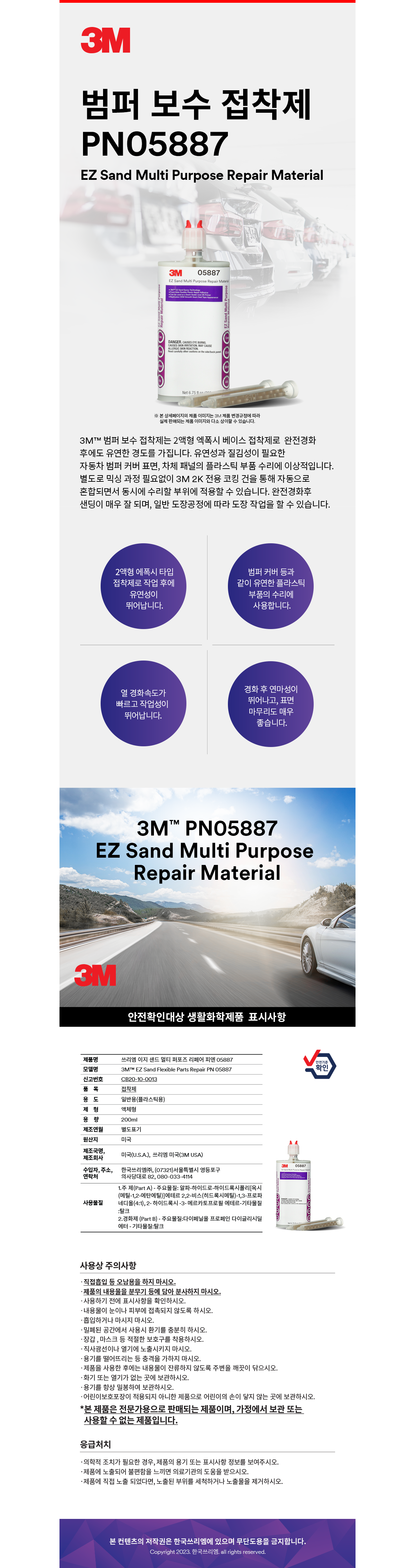 [3M]접착제/범퍼보수접착퍼티/플라스틱보수제/PN5887